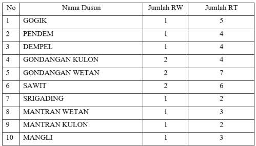Tabel 1.1 Pembagian Wilayah Administrasi Desa Girirejo
