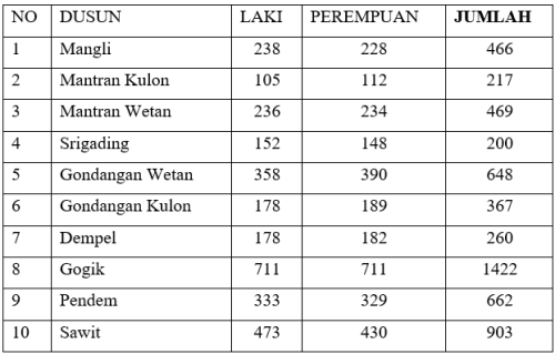 Jumlah penduduk perdusun pada tahun 2020. Lebih jelasnya dapat dilihat dalam tabel 1.3 berikut :